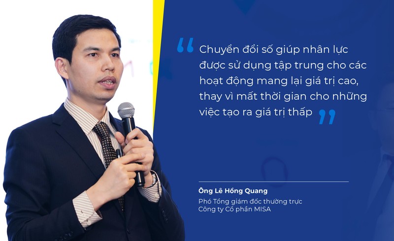 “Nếu doanh nghiệp không chuyển đổi số thì đối thủ sẽ làm. Trước sau gì cũng chuyển đổi số, tại sao chúng ta không làm sớm để tạo ra nhiều giá trị hơn”– ông Quang nêu vấn đề.