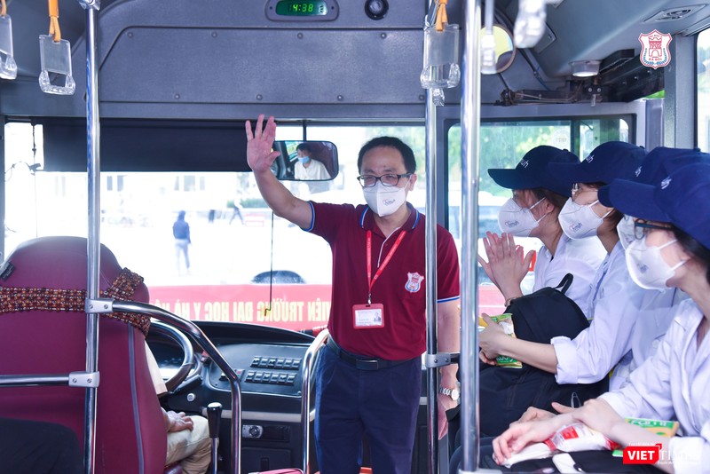 Tất cả các thầy cô lãnh đạo của Trường đều có mặt, tặng quà và tiễn đoàn công tác vào tâm dịch. “Đằng sau các em luôn có sự quan tâm rất lớn của nhà trường, của các thầy cô, bạn bè và sẵn sàng hỗ trợ các em hoàn thành tốt sứ mệnh của sinh viên Trường Đại học Y Hà Nội. Trường cũng cam kết hỗ trợ công cụ, vật tư tiêu hao cần thiết cho địa phương để việc chống dịch hiệu quả. Đây cũng là dịp tốt cho sinh viên tiếp xúc với thực tiễn khi lần đầu tiên biết đến việc xử lý ổ dịch ở cộng đồng ra sao, cách thức điều hành từ sở đến địa phương, biết rõ được cách ứng xử của nhân viên y tế ở từng vị trí, các nhóm, các đơn vị với nhau, cũng là cơ hội thực tế cho từng sinh viên” – GS.TS. Tạ Thành Văn chia sẻ.