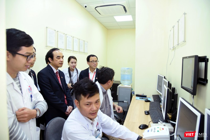 Ngay sau lễ ký kết, lãnh đạo Bệnh viện K đưa lãnh đạo Trường Đại học Y Hà Nội tham quan cơ sở vật chất của Bệnh viện