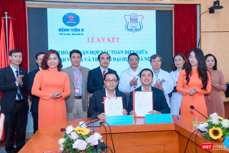 Lãnh đạo Trường Đại học Y Hà Nội và lãnh đạo Bệnh viện K cùng dự lễ ký kết hợp tác