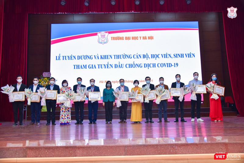 Thừa uỷ quyền của Thủ tướng Chính phủ, đại diện Bộ Y tế đã trao Bằng khen của Thủ tướng cho tập thể Trường Đại học Y Hà Nội và 3 cá nhân có thành tích xuất sắc trong công cuộc phòng, chống dịch: GS. TS. Lê Thị Hương - Viện trưởng Viện Đào tạo Y học dự phòng và Y tế công cộng; PGS. TS. Nguyễn Lân Hiếu - Giám đốc BV Đại học Y Hà Nội và PGS. TS. Trần Huy Thịnh - Trưởng phòng Quản lý Khoa học Công nghệ.