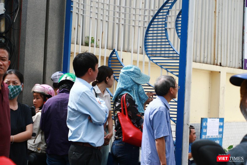 Nhiều phụ huynh đứng trước cổng chờ đợi con thi
