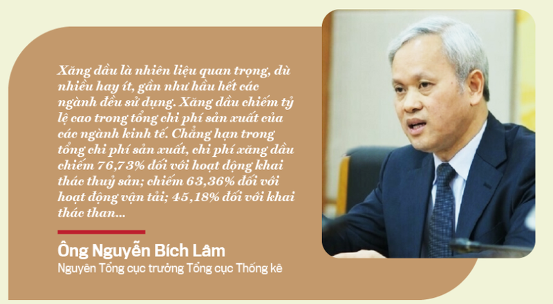 Xăng dầu là nhiên liệu quan trọng, dù nhiều hay ít, gần như hầu hết các ngành đều sử dụng. Xăng dầu chiếm tỷ lệ cao trong tổng chi phí sản xuất của các ngành kinh tế. Chẳng hạn trong tổng chi phí sản xuất, chi phí xăng dầu chiếm 76,73% đối với hoạt động khai thác thuỷ sản; chiếm 63,36% đối với hoạt động vận tải; 45,18% đối với khai thác than…
