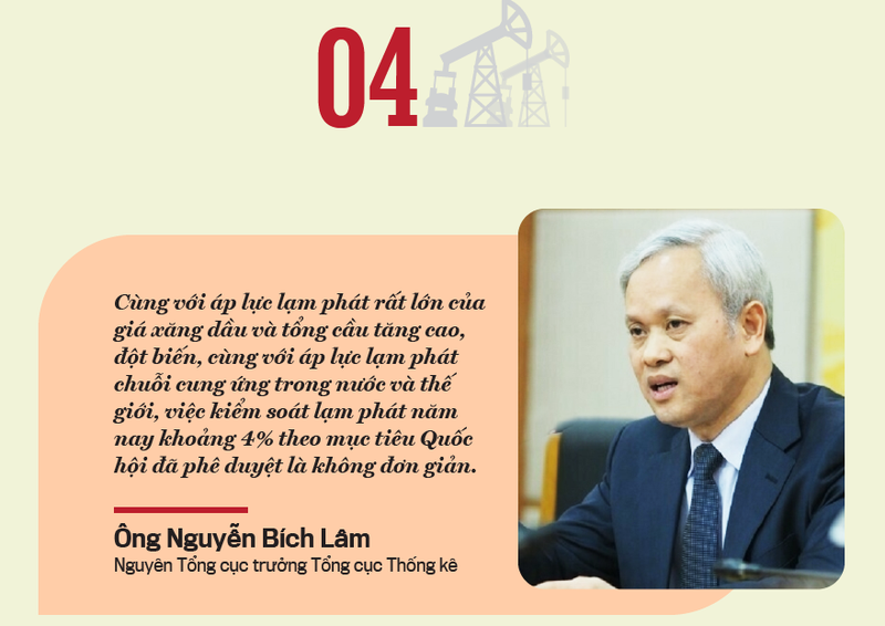 Như vậy, cùng với áp lực lạm phát rất lớn của giá xăng dầu và tổng cầu tăng cao, đột biến, cùng với áp lực lạm phát chuỗi cung ứng trong nước và thế giới, việc kiểm soát lạm phát năm nay khoảng 4% theo mục tiêu Quốc hội đã phê duyệt là không đơn giản.