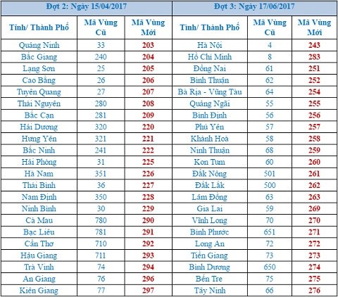 Việc chuyển đổi mã vùng được chia làm 3 giai đoạn:
