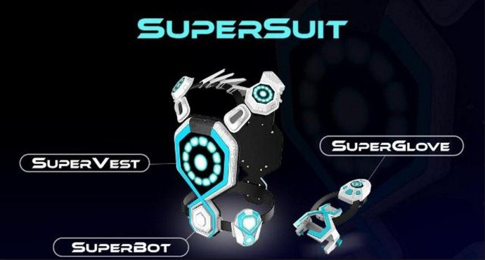 Super Suit vừa là tên trò chơi đó, vừa là tên của thiết bị mà bất cứ game thủ nào muốn tham gia vào game cũng phải sở hữu. Thiết bị này bao gồm một bộ giáp mặc thẳng lên người tương tự bộ giáp Ironman nổi tiếng của Marvel nhưng nhỏ gọn hơn nhiều, kèm theo đó là một chiếc găng tay làm vũ khí và một thiết bị tách rời khác.