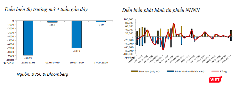 Ở chiều hướng ngược lại, NHNN đã bơm ròng 13.570 tỷ đồng qua kênh tín phiếu. Cụ thể, NHNN đã phát hành 22.830 tỷ đồng tín phiếu mới, trong khi lượng vốn đáo hạn đạt 36.400 tỷ đồng.