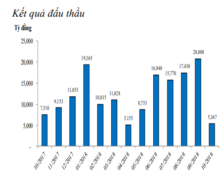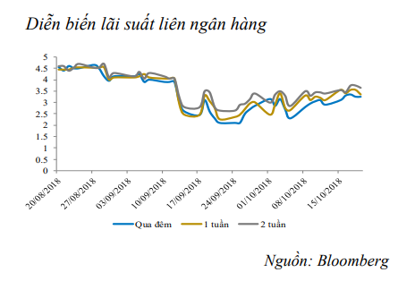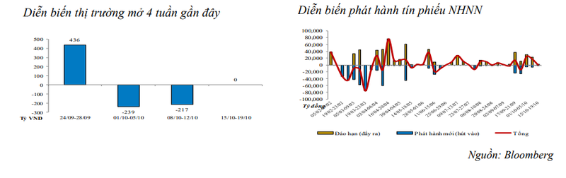 Trích dẫn nguồn số liệu từ Bloomberg, Bản tin trái phiếu tuần số 42 của Công ty Cổ phần Chứng khoán Bảo Việt (BVSC) cho biết tổng hợp hai kênh OMO (thị trường mở) và tín phiếu, NHNN đã bơm ròng 250 tỷ đồng vào thị trường từ 15/10 - 19/10/2018.