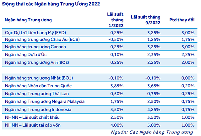 Tại báo cáo tăng trưởng kinh tế Việt Nam quý III và dự báo quý IV, Ngân hàng UOB Việt Nam cho biết NHNN đã gây bất ngờ với việc thắt chặt lãi suất vào cuối giờ chiều 22/9, qua đó báo hiệu bắt đầu chu kỳ bình thường hóa chính sách sau khi Fed nâng lãi suất cơ bản thêm 75 điểm cơ bản lần thứ ba liên tiếp vào sáng cùng ngày. Theo UOB Việt Nam, NHNN đã tăng hai loại lãi suất chính sách thêm 100 điểm cơ bản (1 điểm %), nâng lãi suất tái cấp vốn từ mức thấp lịch sử 4% lên 5%.