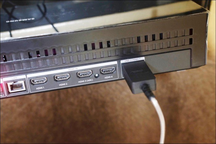 Samsung cũng mang đến hộp One Connect mới cho dòng TV QLED 8K 2019 với bốn cổng HDMI 2.1 (mang nhiều dữ liệu hơn HDMI 2.0 và có thể hỗ trợ 8K tốc độ 60 hình/giây trở lên), 3 cổng USB, 1 cổng LAN, 1 cổng AV… bao gồm cả kết nối Bluetooth (chỉ hỗ trợ tùy chọn tai nghe không dây) và mạng không dây WiFi, Airplay 2