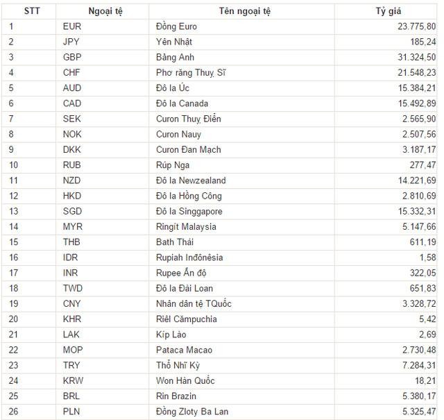 Theo lịch hàng tuần, hôm nay (Thứ Năm ngày 28/01), NHNN cũng công bố tỷ giá tính chéo của Đồng Việt Nam với một số ngoại tệ để xác định trị giá tính thuế, có hiệu lực từ ngày 28/01/2016 đến ngày 03/02/2016.