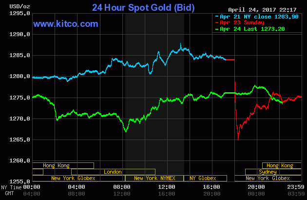 Trên phương thức giao dịch điện tử, tính đến thời điểm 9h17’ sáng nay (giờ Việt Nam), giá vàng giao ngay Comex đang đứng ở $1.273,44/oz.