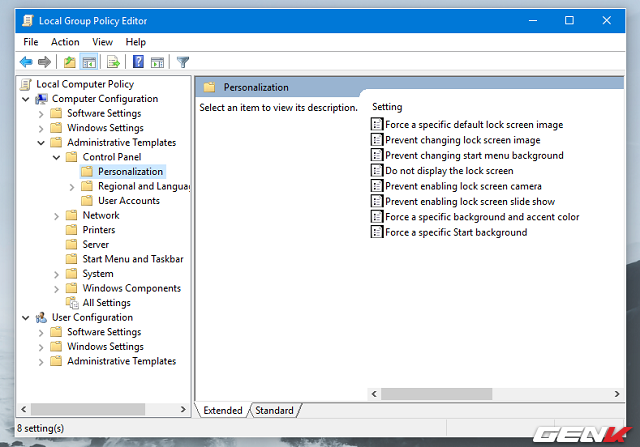 Computer Configuration -> Administrative Templates -> Control Panel -> Personalization