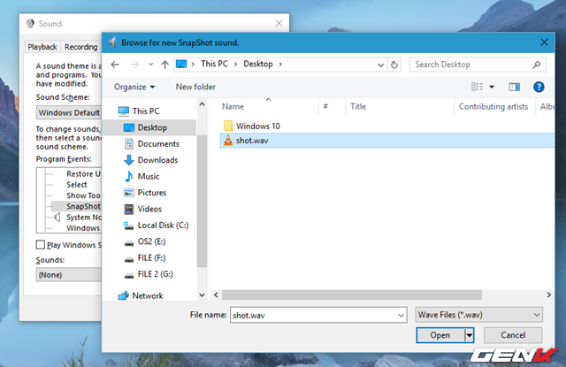 Thêm âm thanh chụp ảnh khi nhấn phím PrintScreen