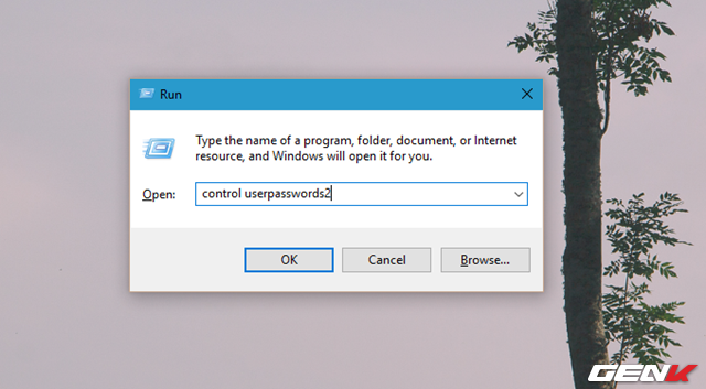 Ngoài ra, nếu muốn nhanh hơn bạn hãy nhập lệnh “control userpasswords2” vào hộp thoại RUN để gọi hộp thoại User Accounts xuất hiện.