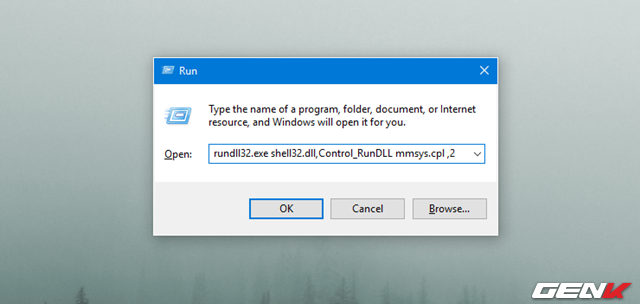 Nhấn tổ hợp phím WIN+R để gọi hộp thoại RUN và nhập vào lệnh sau: