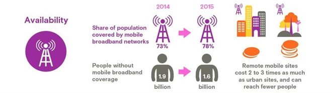 Độ phủ sóng là vấn đề lớn đầu tiên. Phần lớn người dùng mới sẽ tiếp cận Internet thông qua điện thoại 3G hoặc 4G. Tuy vậy, vẫn có đến 1,6 tỷ người sống ở những khu vực thiếu những kết nối này. Hơn 90% trong số đó từ các nước thế giới thứ ba: Đông Nam Á, khu vực châu Phi hạ Sahara.