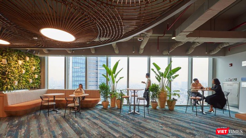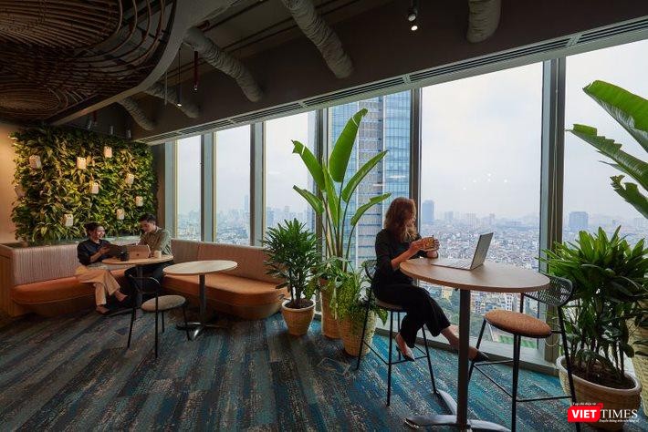 Văn phòng có nhiều khu vực không gian mở, cây xanh. |