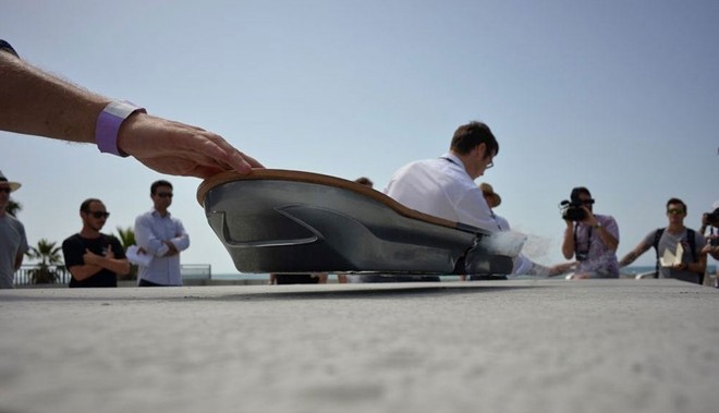 Các video công bố mới đây cho thấy chiếc ván bay này đang được thử nghiệm tại một công viên trượt ván ở Tây Ban Nha.