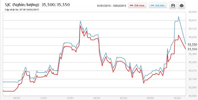 Nếu như tại thời điểm cuối năm 2014, chênh lệch giá vàng đã co về mức 4 triệu đồng/lượng thì sang đến tháng 1 năm 2015, khoảng cách giá vàng trong nước và quốc tế đã thu hẹp về mức 2 triệu đồng/lượng, thấp kỷ lục kể từ ngày 13/5/2014.