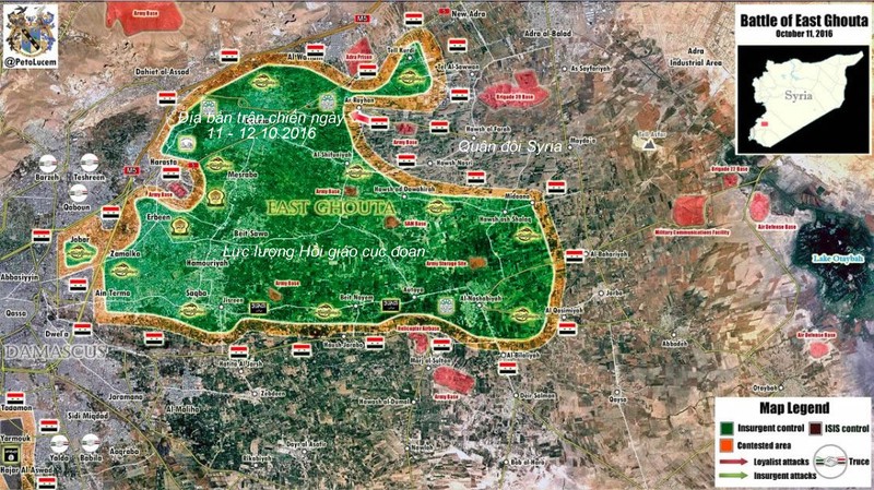 Cập nhật bản đồ tình hình chiến sự vùng Đông Ghouta ngày 11.10.2016