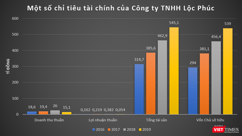 Dữ liệu của VietTimes cho thấy, trong 4 năm trở lại đây, kết quả kinh doanh của Lộc Phúc chưa cho thấy sự tương xứng với quy mô tài sản, nguồn vốn. Gần nhất là năm 2019, Lộc Phúc ghi nhận doanh thu thuần đạt 15,1 tỉ đồng, tuy nhiên lãi thuần chỉ vỏn vẹn 54 triệu đồng, tương ứng với biên lợi nhuận 0,35%.