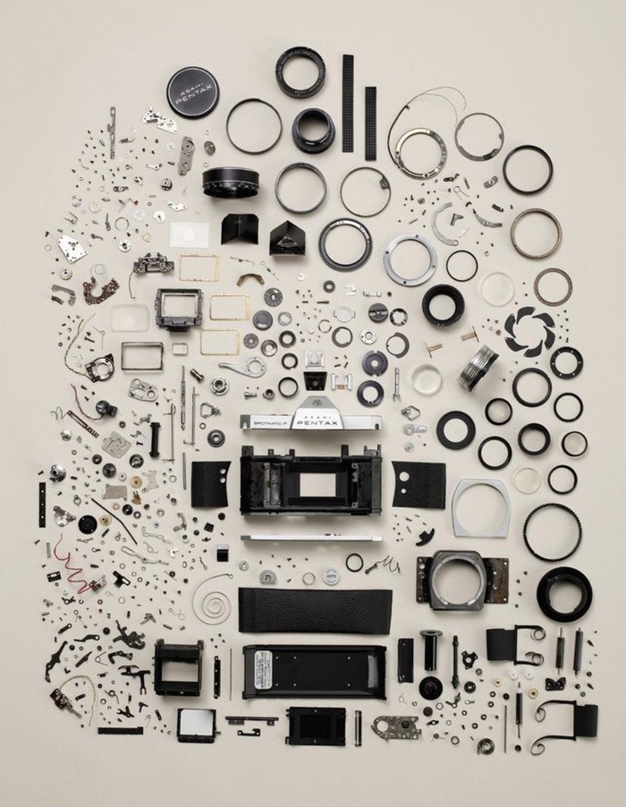 “Có nhiều thiết bị tôi nghĩ chẳng có gì, và dự định sẽ mất khoảng 2, 3 giờ để tháo ra. Đến khi làm, tôi mới nhận thấy nó có quá nhiều thành phần”, Todd McLellan chia sẻ. Trong hình là một chiếc máy ảnh phim của Asahi Pentax.