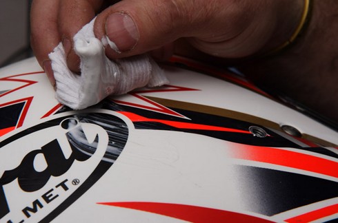 Cuối cùng, sau khi các chi tiết đã khô ráo một cách triệt để, lắp ráp lại theo trình tự ngược với lúc tháo. Đánh bóng toàn mũ với nước rửa kính, khi đó, mũ bảo hiểm sẽ trông như vừa mới bóc tem.