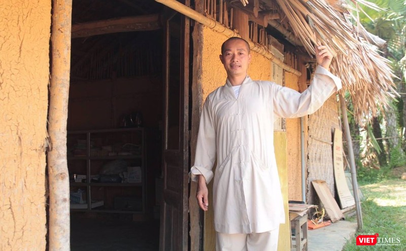 Thầy Thích Chúc Kiểm trong nhà tăng dột nát.