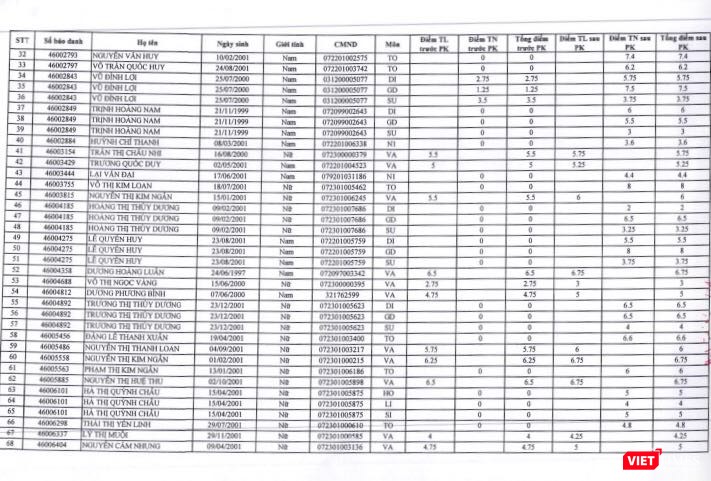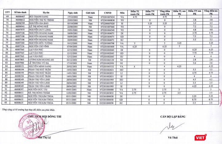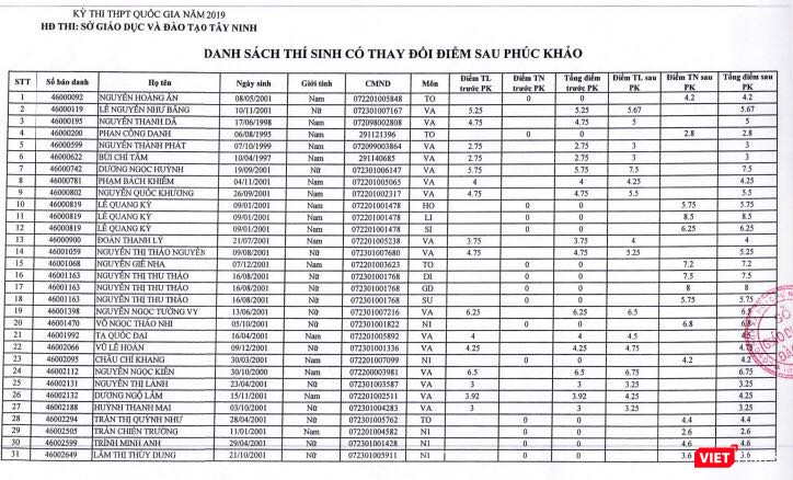 Danh sách 95 thí sinh thay đổi điểm thi sau phúc khảo tại tỉnh Tây Ninh.