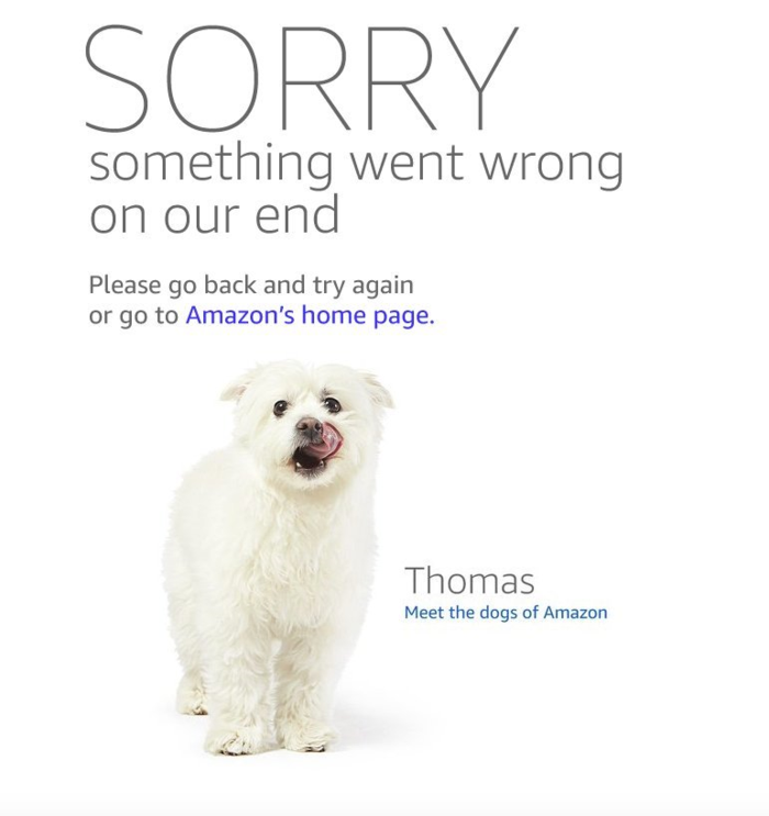 Prime Day 2018, mùa sale lớn trong năm của Amazon vừa bắt đầu đã khiến trang web “chết đi sống lại” vì quá tải. Lúc này, khi truy cập website công ty, bạn sẽ nhìn thấy trang báo lỗi kèm hình ảnh nhiều chú chó khác nhau. Bạn có tò mò vì sao lại là chó mà không phải loài vật nào khác?