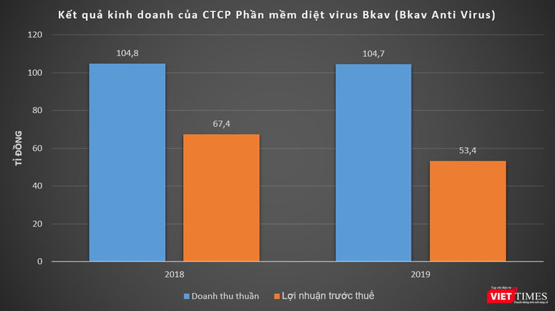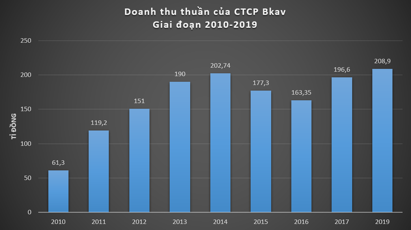 Năm 2019, Bkav ghi nhận doanh thu thuần đạt 208,9 tỉ đồng, lợi nhuận trước thuế ở mức 10,7 tỉ đồng.