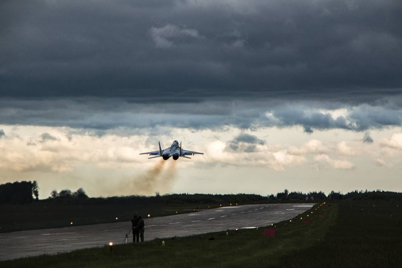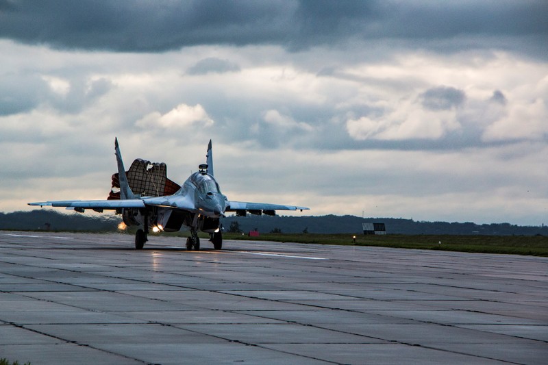 VietTimes -- Thời tiết xấu là điều kiện tuyệt vời cho các phi công máy bay tiêm kích MiG -29UMT, hay còn gọi là máy bay tiêm kích MiG-29M2 huấn luyện chiến đấu. Phiên bản tiêm kích MiG - 29MUT là phiên bản tiêm kích hiện đại hóa sâu của MiG-29. Cao hơn nữa là MiG-35.