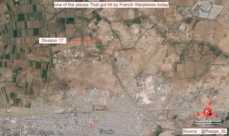 Theo Bộ trưởng Bộ quốc phòng Pháp, không quân đã tấn công vào trung tâm tuyển mộ chiến binh thánh chiến, trại huấn luyện và xưởng sửa chữa, chế tạo vũ khí của tổ chức IS.