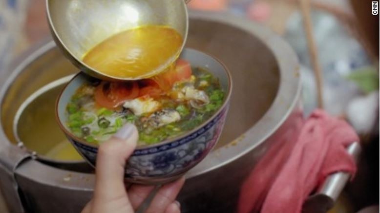 Đoạn phim của CNN ghi lại cận cảnh việc chế biến một bát bún ốc, từ khâu gảy ốc, trần bún, rưới nước dùng,… Vị đầu bếp nổi tiếng người Mỹ có lẽ đặc biệt thích thú với những con ốc và liên tục thể hiện sự ngon miệng, hài lòng.