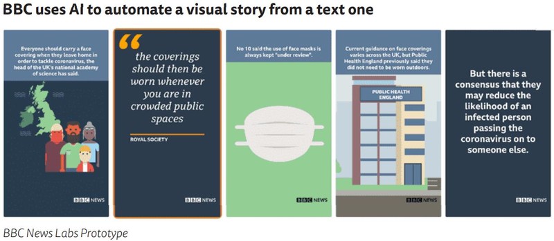 BBC đang thử nghiệm các công cụ chuyển đổi những tin tức bằng văn bản thành những “câu chuyện bằng hình ảnh” có thể hiển thị trên điện thoại di động. Những công cụ tương tự trên có thể giúp các công ty truyền thông phục vụ sở thích khác nhau của khán giả mà không đòi hỏi quá nhiều nguồn lực đầu tư vào đó.