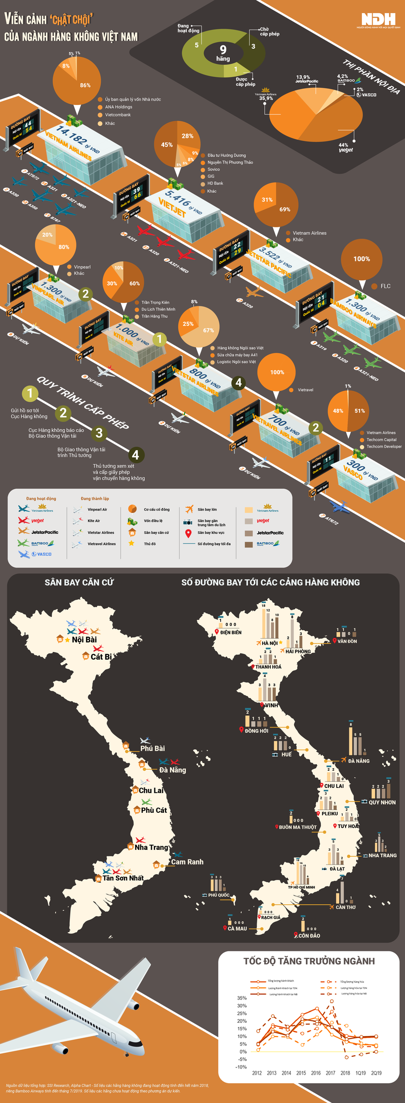 Như vậy nếu không có vấn đề về mặt hồ sơ pháp lý của các hãng này, ngành hàng không Việt Nam sẽ có tổng cộng 9 hãng trong thời gian tới. Điểm đáng nói là chỉ trong vòng vài tháng trở lại đây, các hãng hàng không mới đã liên tục xuất hiện trong bối cảnh triển vọng ngành có xu hướng chậm lại, trong khi hạ tầng hàng không đang ở tình trạng quá tải và có nguy cơ ảnh hưởng đến an toàn, an ninh thậm chí là cả an ninh quốc phòng.
