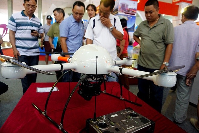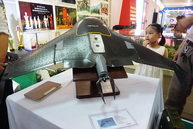 Đợt triển lãm này có hai chiếc máy bay mini không người lái cũng thu hút nhiều người xem. Trong đó, loại UAV Microdrones MD-1000 do Đức sản xuất. Loại thiết bị bay này được nhập 2 năm nay để phục vụ việc chụp hình ảnh làm bản đồ trong quân đội và phục vụ công tác tìm kiếm, cứu nạn cứu hộ. Máy bay mini không người lái này nhập nguyên chiếc từ Đức, kèm một số phụ tùng với giá 3,1 tỷ đồng.