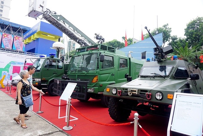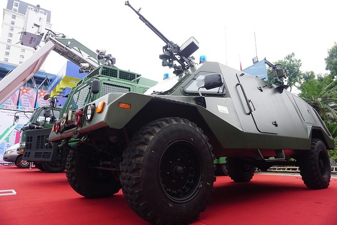 Ngoài ra, xe chống đạn nguỵ trang, xe bọc thép trang bị súng, hệ thống phóng thang tốc chiến... cũng là những loại khí tài hiện đại được trưng bày tại triển lãm: