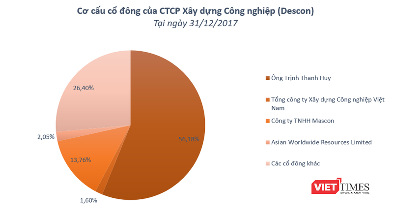 Tính đến cuối năm 2017, cơ cấu cổ đông của Descon bao gồm: Ông Trịnh Thanh Huy (56,17% VĐL), Tổng công ty Xây dựng Công nghiệp Việt Nam (Vinaincon – 1,6% VĐL), Công ty TNHH Mascon (13,76% VĐL), Asian Worldwide Resources Limited (2,05% VĐL) và các cổ đông khác (26,4% VĐL).