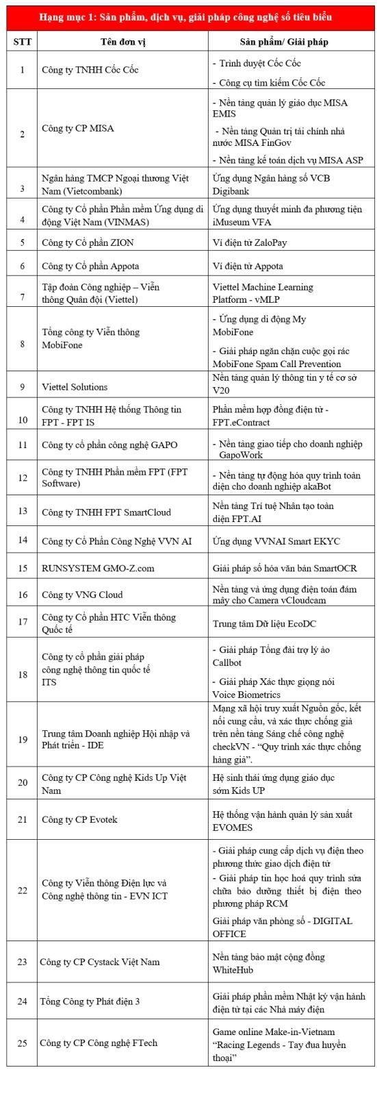 Hạng mục 1: Sản phẩm, Dịch vụ, Giải pháp chuyển đổi số tiêu biểu
