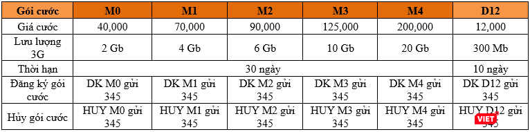 Để đăng ký các gói cước mới của Vietnamobile, khách hàng nhắn tin theo các cú pháp sau