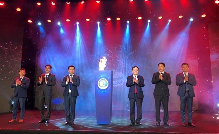 Các lãnh đạo Viettel thực hiện nghi thức khánh thành Tổng công ty Công nghiệp Công nghệ cao. (Ảnh: Minh Sơn/Vietnam+)