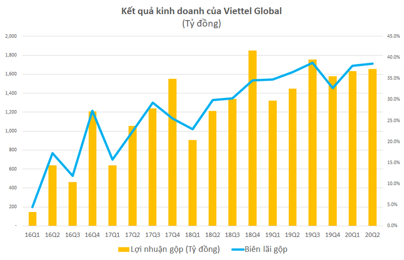 Lũy kế 6 tháng đầu năm, Viettel Global ghi nhận 8.613 tỷ đồng doanh thu, tăng xấp xỉ 10% so với mức 7.854 tỷ đồng của cùng kỳ 2019. Lãi gộp tăng gần 19% lên 3.292 tỷ đồng.