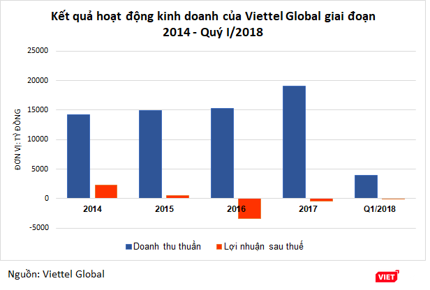 Kết quả kinh doanh của Viettel Global giảm sút rõ rệt kể từ năm 2015, trước ghi khi nhận khoản lỗ lên tới 3.427 tỷ đồng năm 2016.