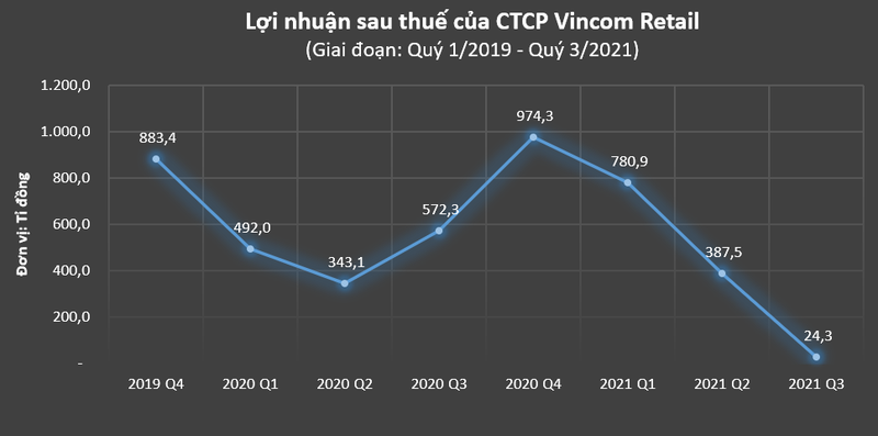 Trong kỳ, tổng doanh thu thuần hợp nhất của VRE đạt 787 tỉ đồng, giảm 55% so với quý 3/2020.