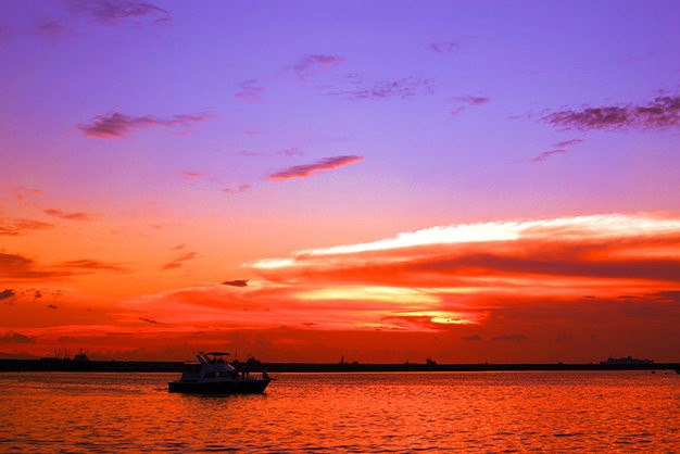 Khi mặt trời chiếu những tia nắng cuối ngày lên làn nước trong xanh, vịnh Hạ Long khoác lên mình một vẻ đẹp lung linh đến huyền diệu. Sắc màu của thiên nhiên vẽ nên một tuyệt tác nghệ thuật, dựng lên phông nền hoàn hảo cho bức ảnh của bạn.