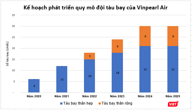 Từ năm 2020 - 2025, trung bình mỗi năm Vinpearl Air sẽ đựa vào khai thác thêm 6 máy bay/năm. Đến năm 2025, đội bay của hãng sẽ đạt 30 chiếc.