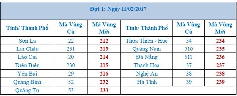 Riêng 4 tỉnh Vĩnh Phúc, Phú Thọ, Hòa Bình và Hà Giang được giữ nguyên mã vùng.