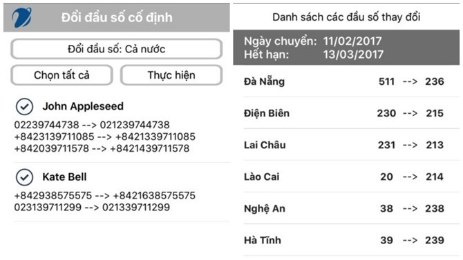 Ứng dụng có tên VNPT Update Contact dành cho cả thiết bị iOS và Android. Ngay khi cài đặt và kích hoạt, ứng dụng sẽ tự động tìm và liệt kê trong danh bạ những mục nào có số điện thoại bàn. Bạn có thể chọn 1 số, nhiều số hay tất cả danh bạ, rồi nhấn nút Thực hiện là ứng dụng sẽ tự động chuyển mã vùng mới cho các đầu số tương ứng có sẵn trong Phone Book.